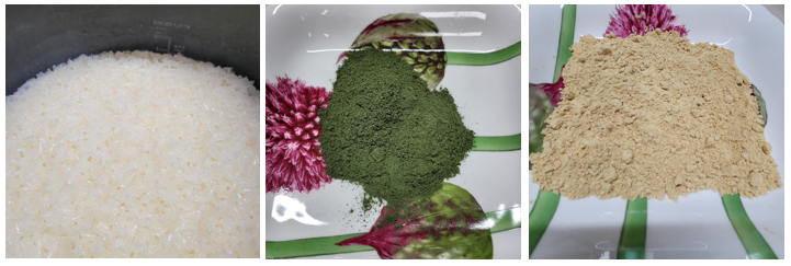 인절미를 만들 준비물 : 찹쌀밥 / 콩가루 / 쑥가루